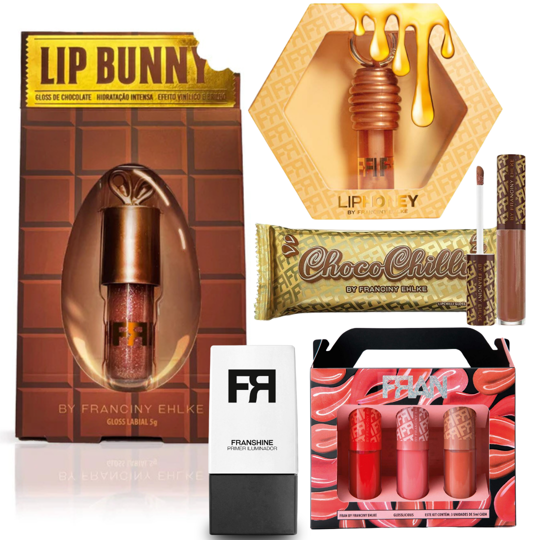 ✨ Prime FRANShine – Primer labial inovador que prepara os lábios, suaviza imperfeições e melhora a fixação do gloss ou batom.