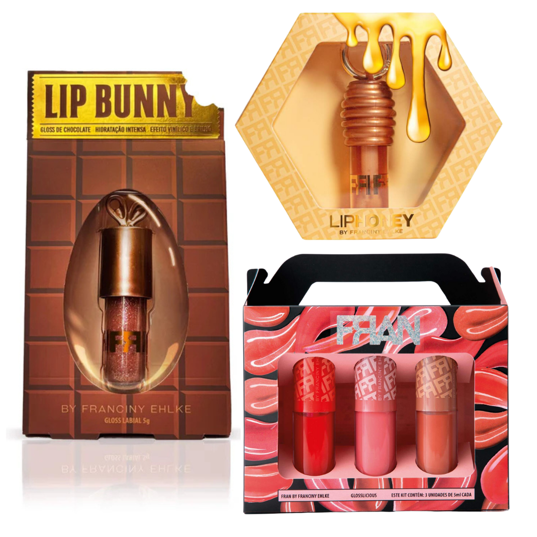 Se você ama lábios radiantes e bem cuidados, esse kit foi feito para você! Com três glosses exclusivos — LipHoney, LipBunny e Glosslicious —, ele combina hidratação intensa, brilho sofisticado e uma experiência sensorial única.